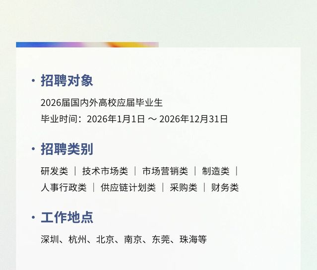 #TP-LINK 2026届春季校园招聘正式启动# TP-LINK普联技术有限公司是领先的ICT设备与解决方案供应商,自1996年成立以来提供的海量设备已服务于千行百业、千家万户,解决方案落地项目超百万。春招8大类岗位全面开放,深圳、杭州、北京、南京4大研发中心、21个中心城市办事处任你选择,岗位招满即止,欢迎大家踊跃投递!