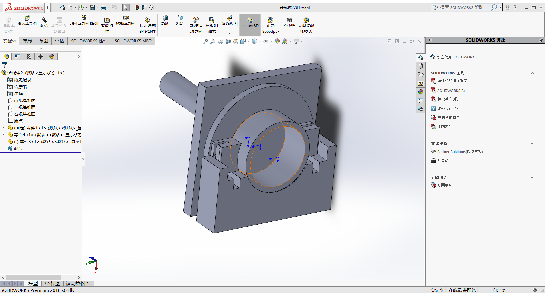 装配图结构由机架、主轴、 轴套、 轴向加载端盖、 径向加载端盖、 径向加载块共 6 个零件和 4 个 6207 轴承组成。