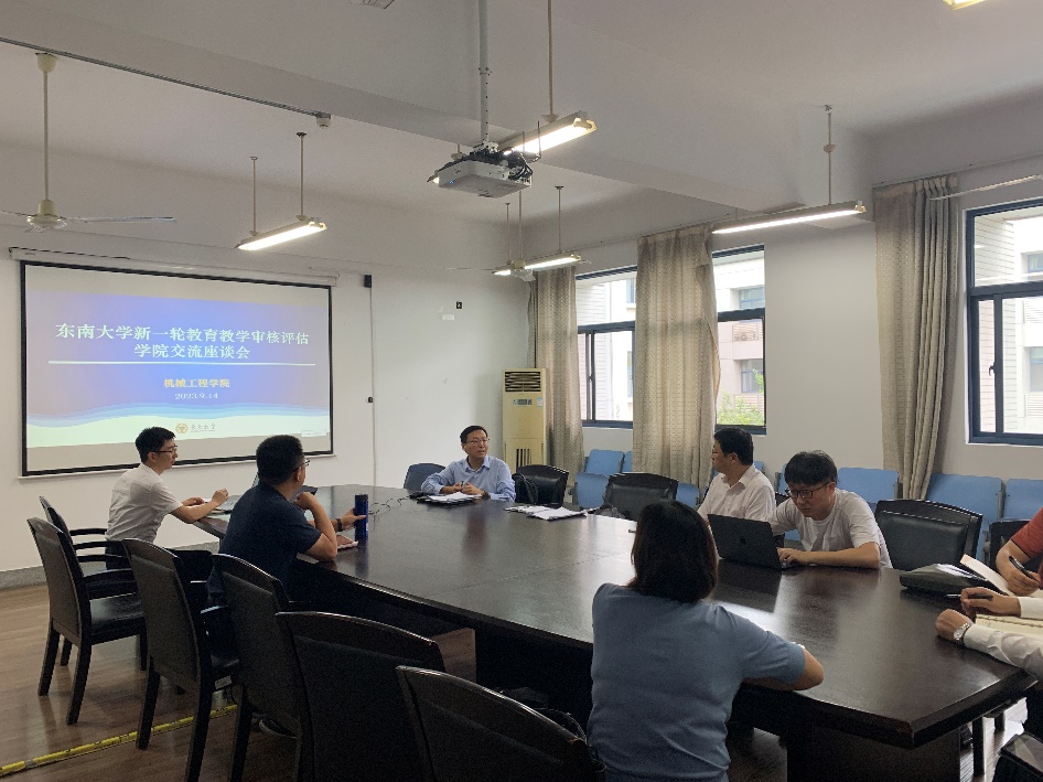为扎实做好教育部新一轮教育教学评估审核工作,2023年9月14日,东南大学教务处张健副处长带领审核评估工作小组来我院开展座谈交流。座谈会由机械工程学院毕可东副院长主持,学院本科教育教学审核评估专项工作组参与了交流。